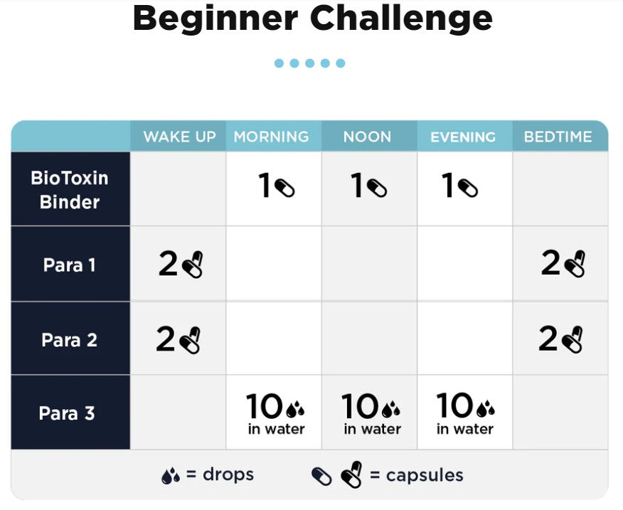 The 5-day and 7-day Full Moon Challenges aren't recommended for people who are brand new to cleansing. Immediately jumping into high doses of the supplements in the Para Kit may cause unwanted reactions to naturally promoting the body’s ability to detoxify.